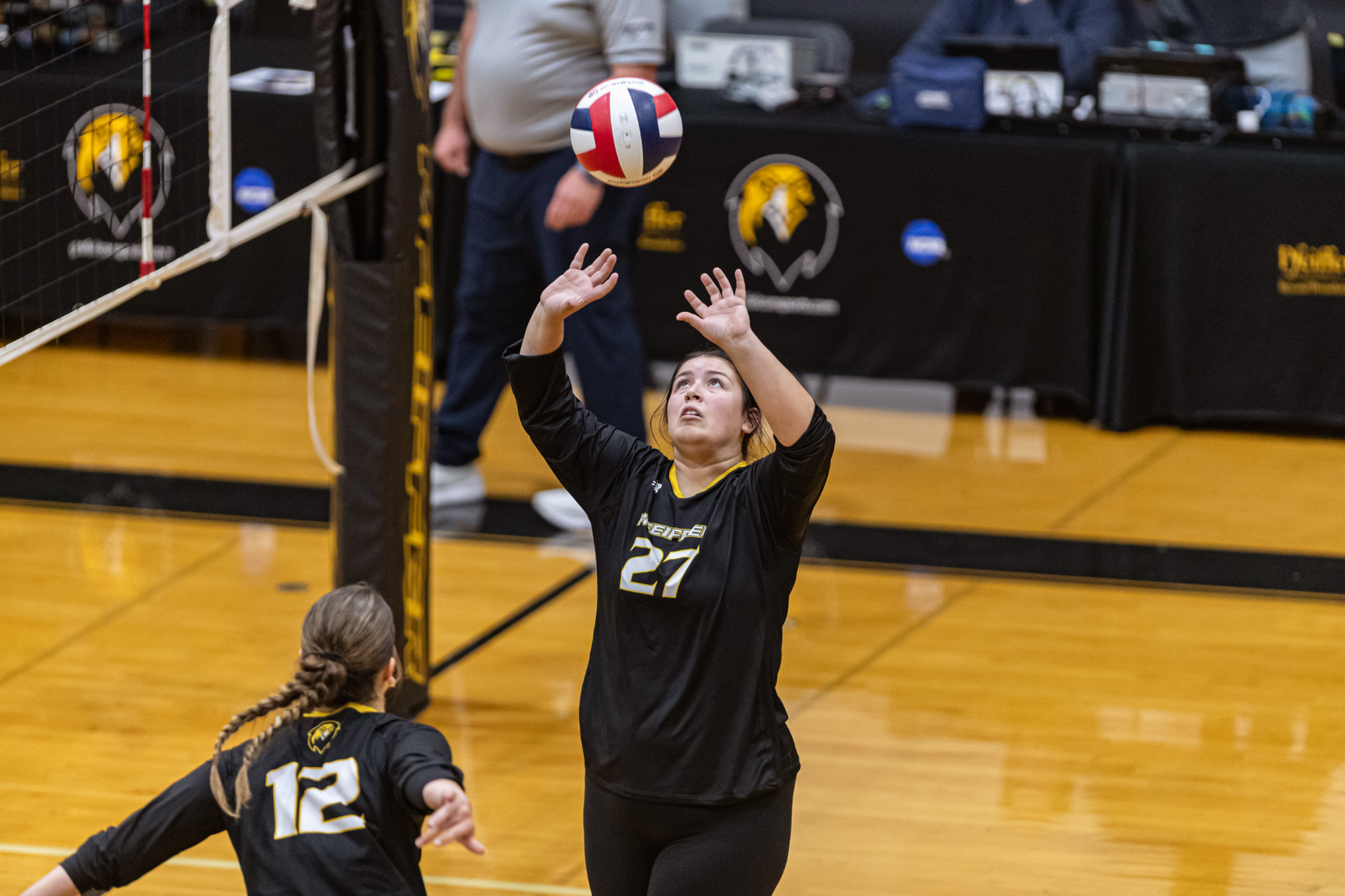 Teammates Emma Gray Beacham (Laurinburg, N.C.) had 21 digs while Bri Weber (Jesup, Iowa) also contributed 14 digs.